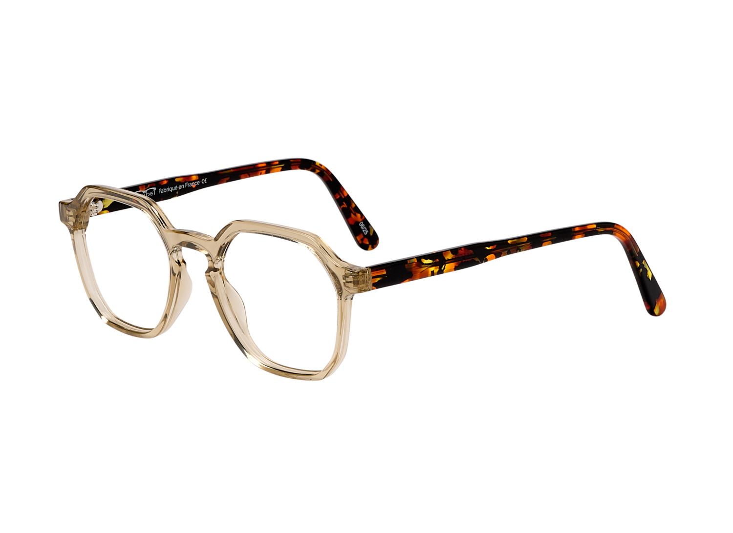 Ces écailles, enrichissent les branches alors que les faces en materiau bio-sourcé a base d'huile de ricin, plus sobres, permettent de proposer des montures chics et intemporelles.